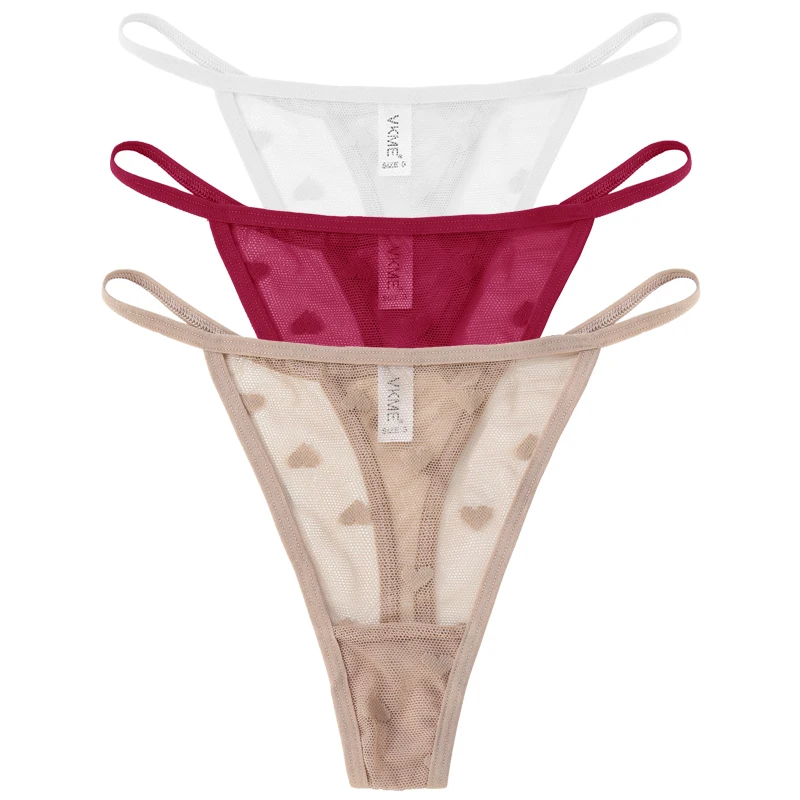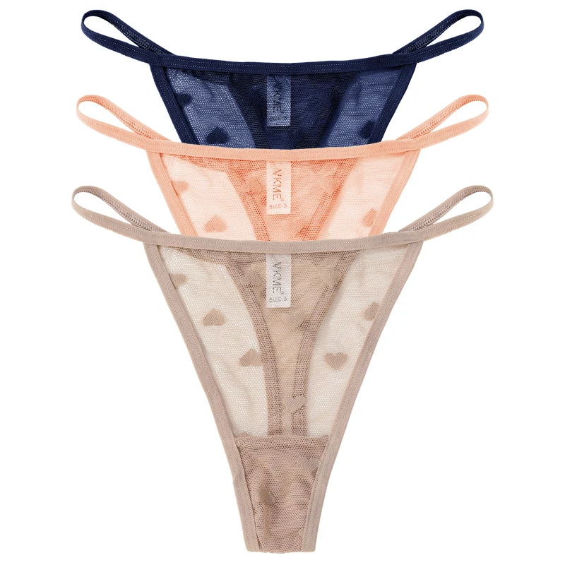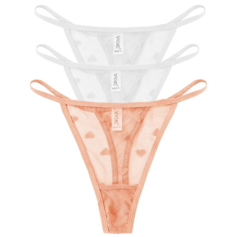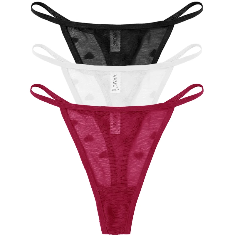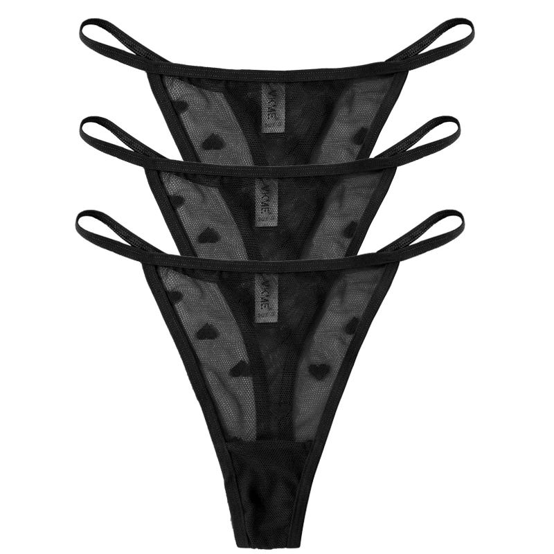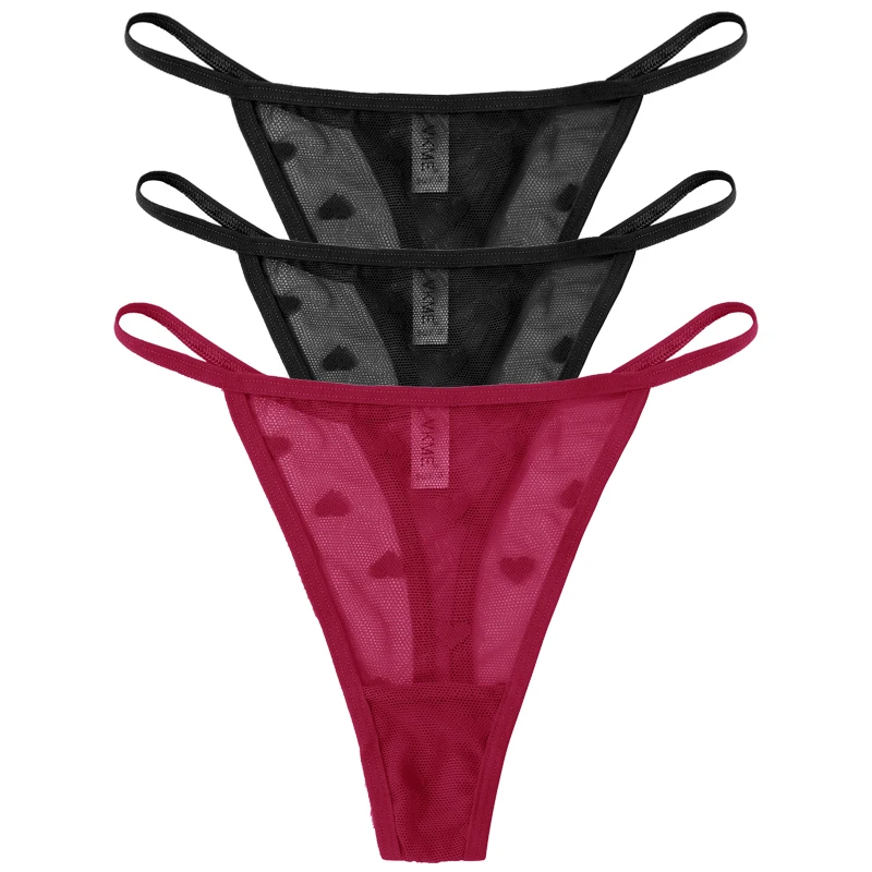 3PCS Lace Sheer Thong Panties Women’s Sexy Low Waist Seamless Lingerie Heart See Through Mesh Underpants Intimates Lingerie