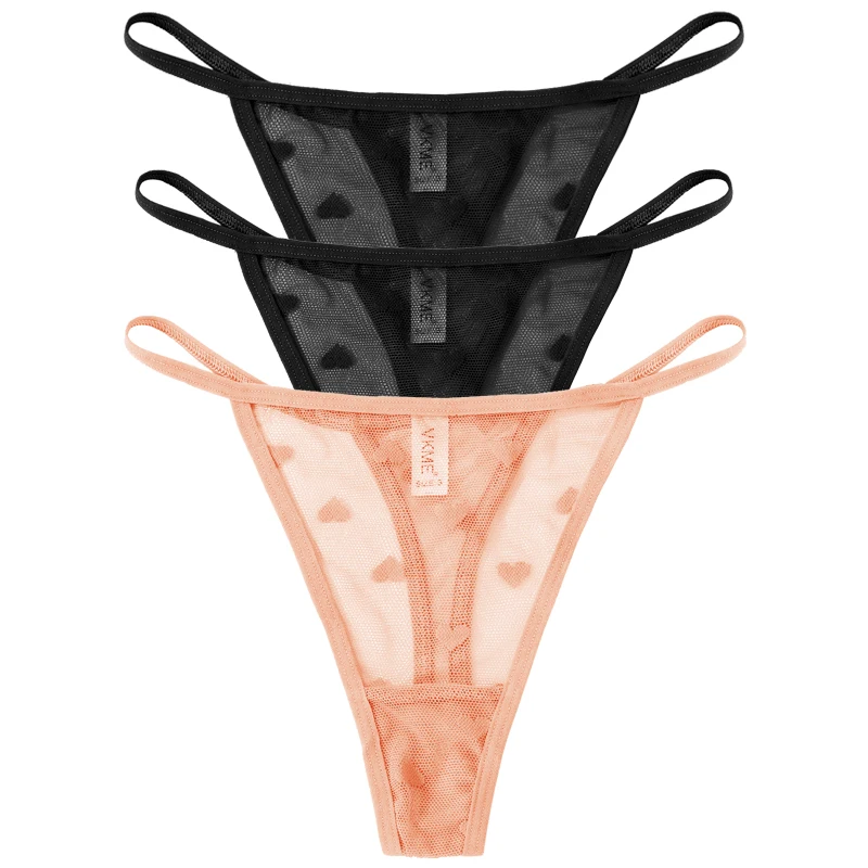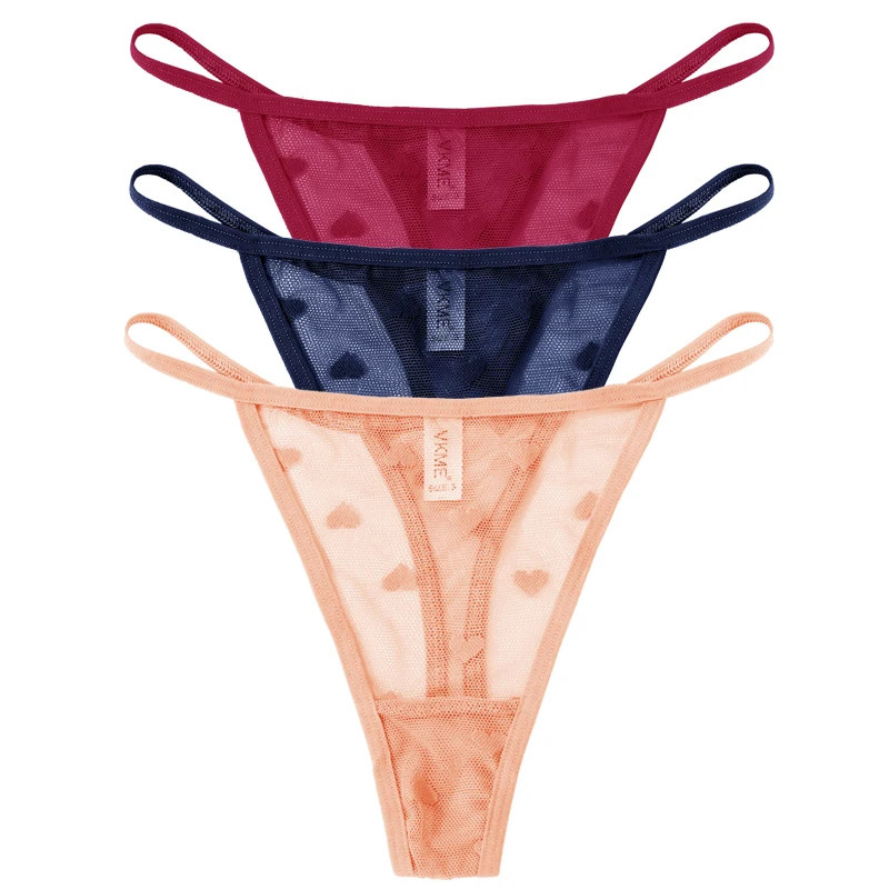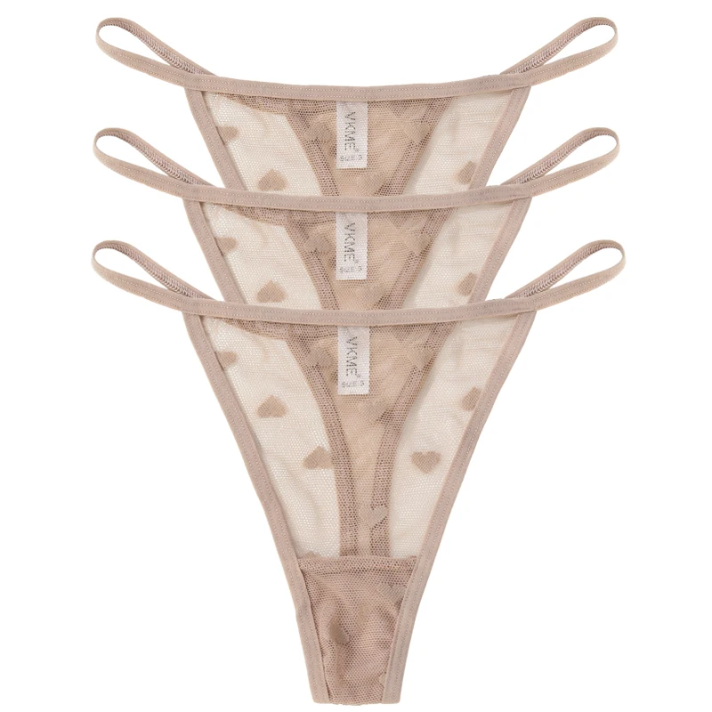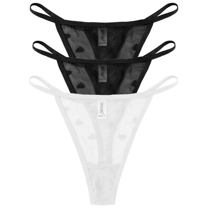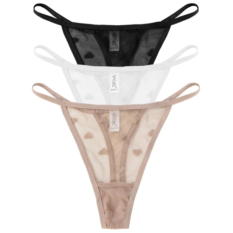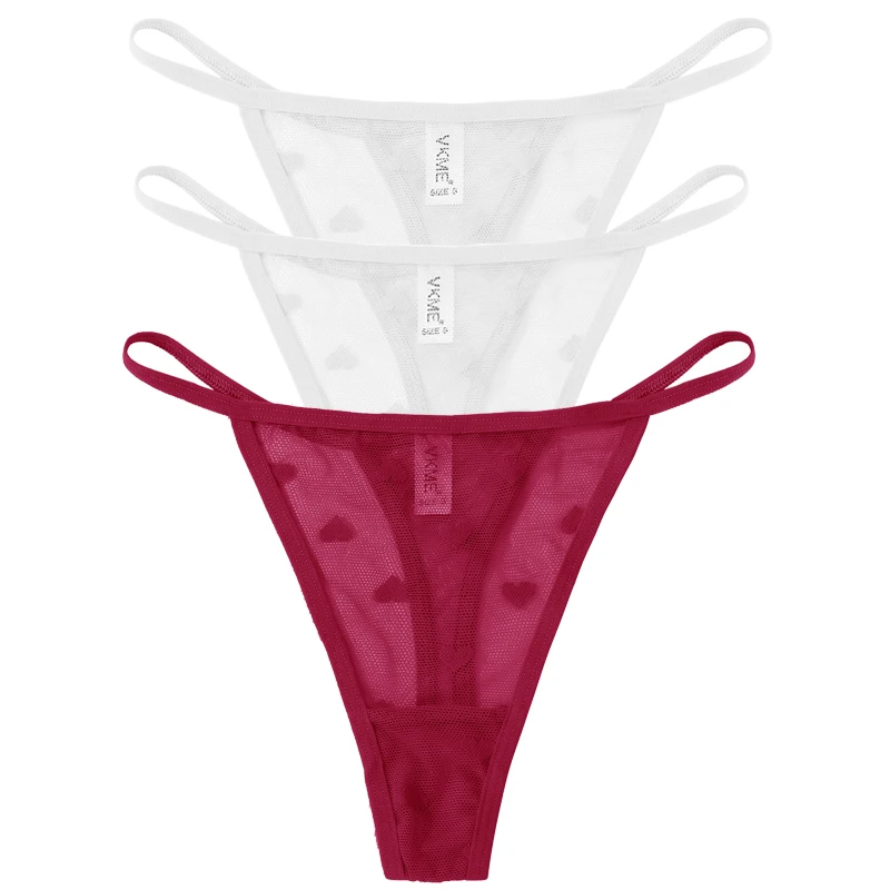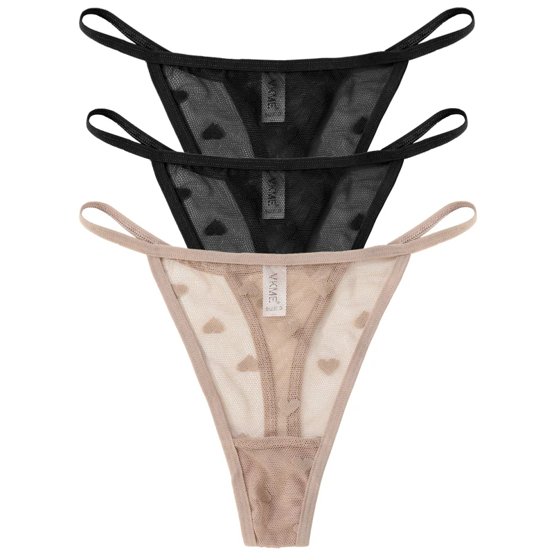 3PCS Lace Sheer Thong Panties Women’s Sexy Low Waist Seamless Lingerie Heart See Through Mesh Underpants Intimates Lingerie