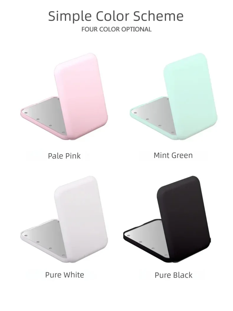 Compact Folding Mirror Portable Mini LED Makeup Mirror With 8 LED, 2x Magnification Button Battery Powered