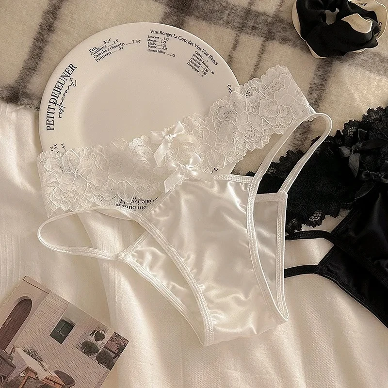 Cross Belt Lace Transparent Sexy Underpants Women’s Low Waist Mesh Hollowed Bow Panties Cotton Breathable Briefs Lingerie
