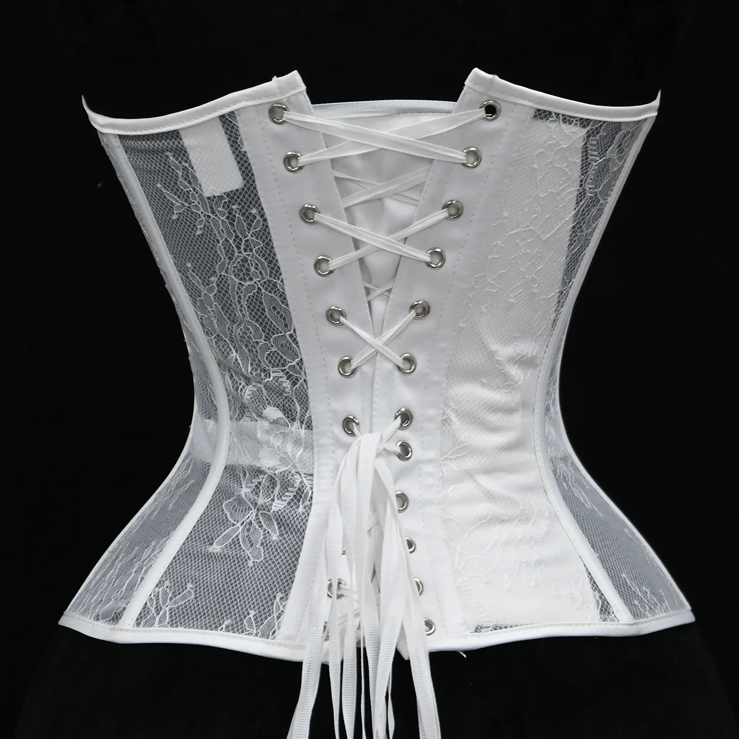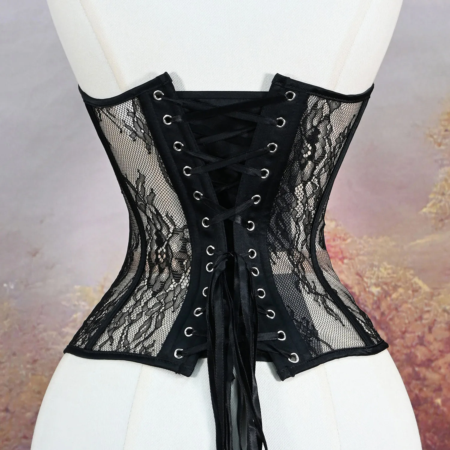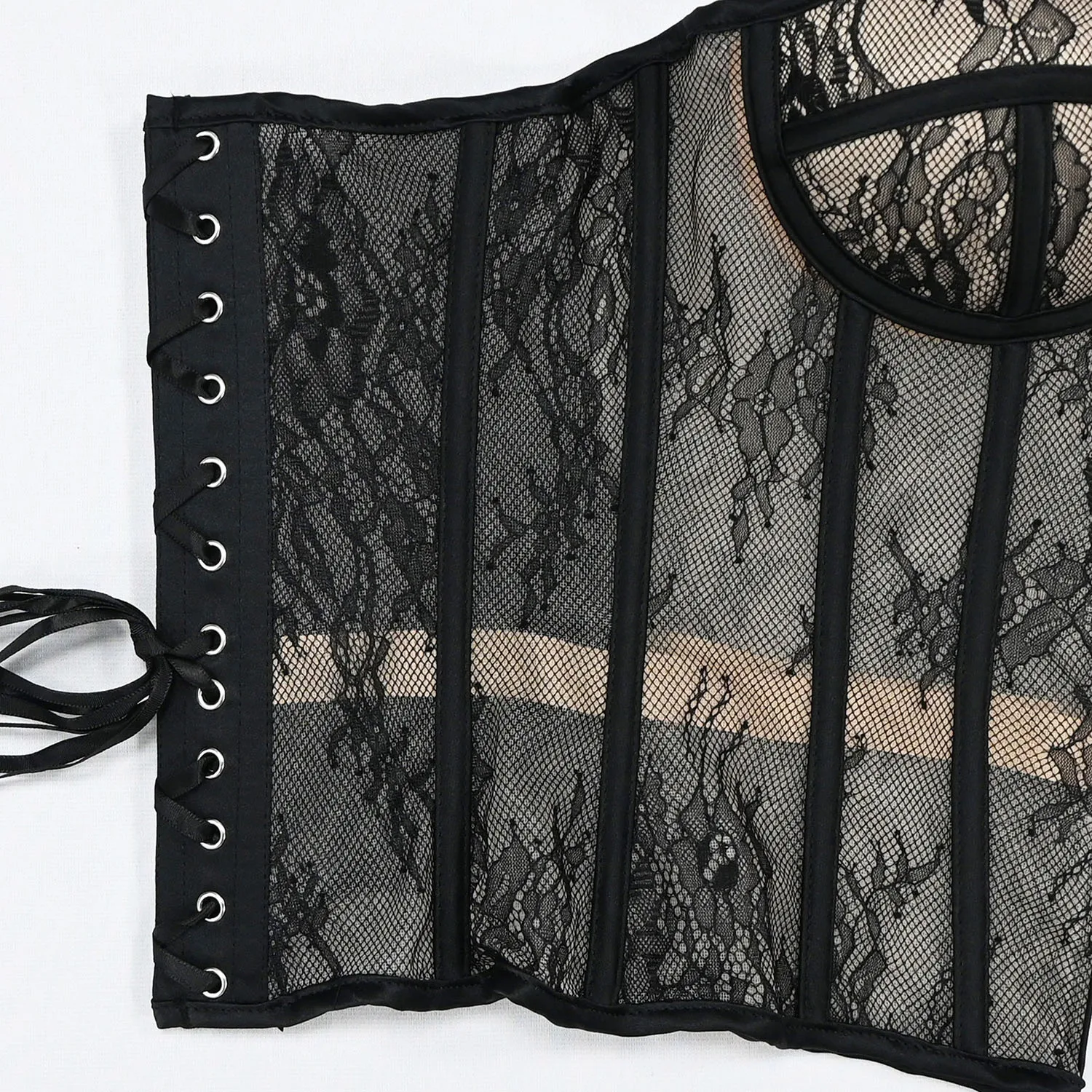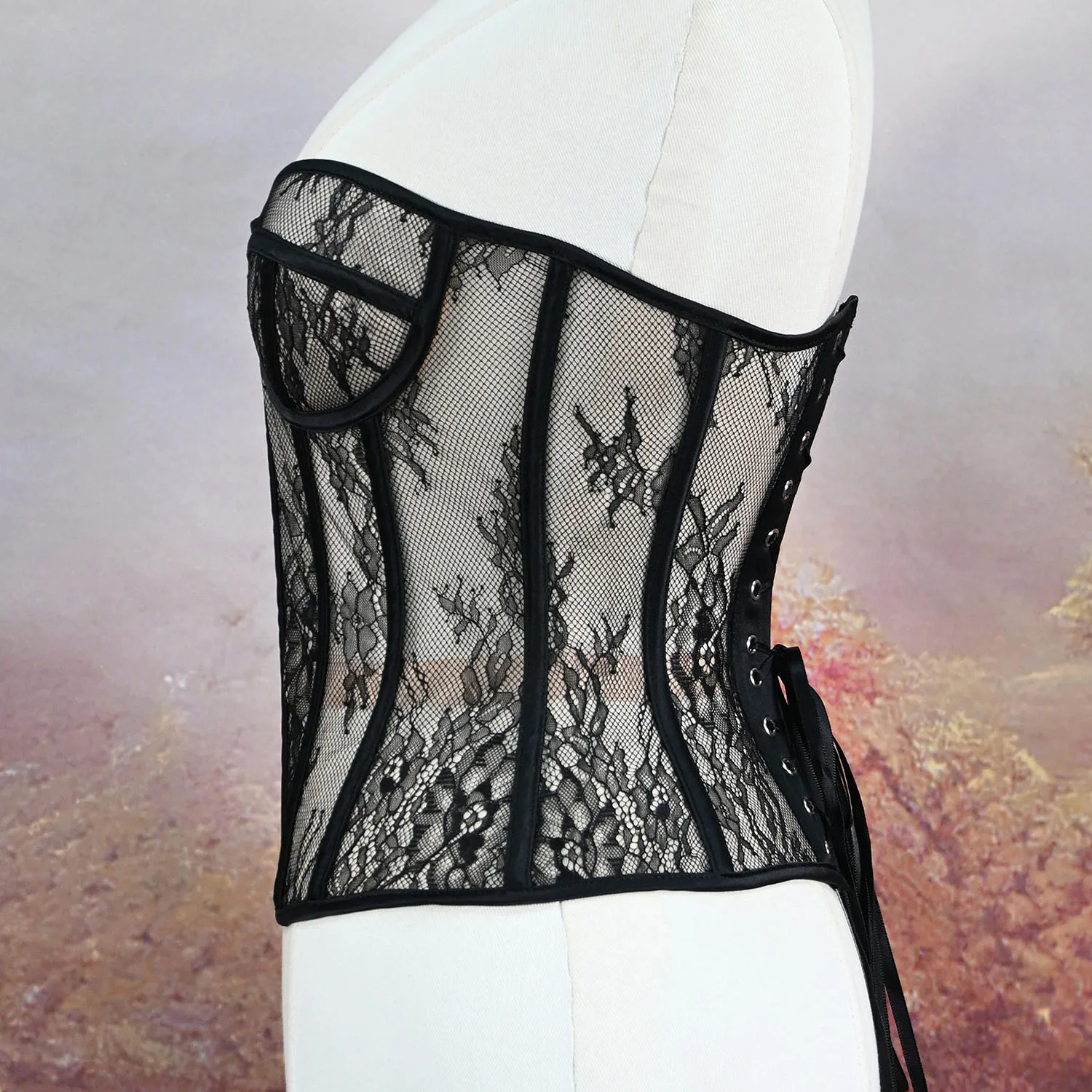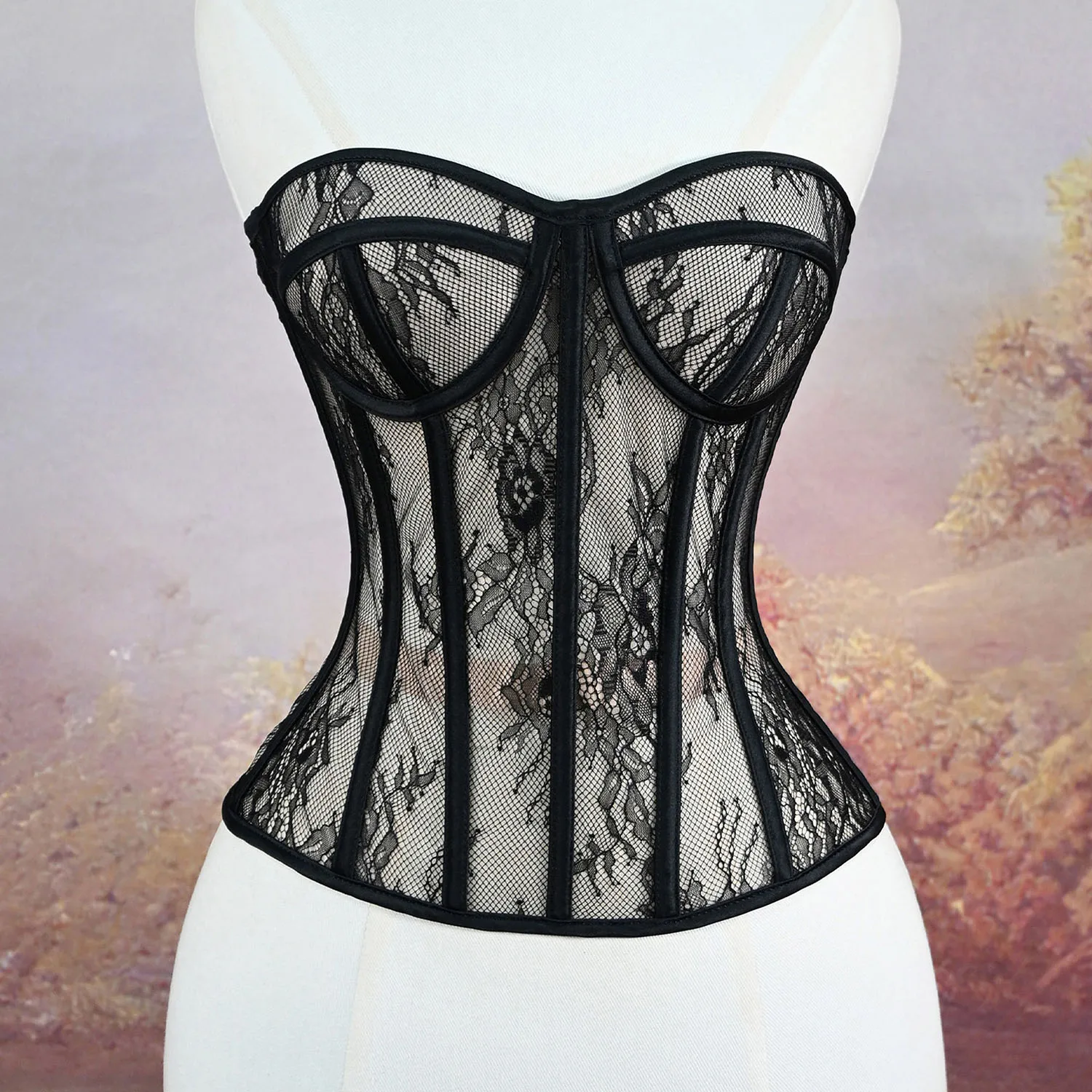 Steel Bone Korset Woman Hollow Out Strapless Lace Bra Bustier Top Mesh Women Lingerie Black White Biege Corset