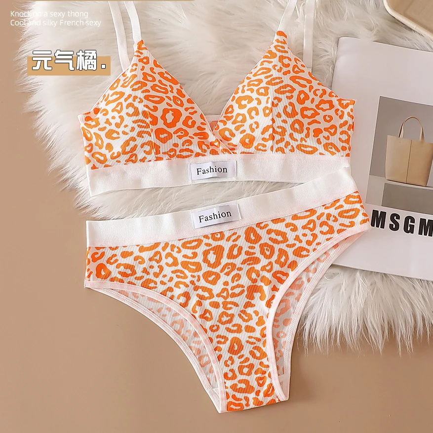 Women Seamless Bra Set Low Waist Panties Leopard Bralette Sexy Lingerie Set Vneck Sport Brassiere Female Cotton Underwear Set