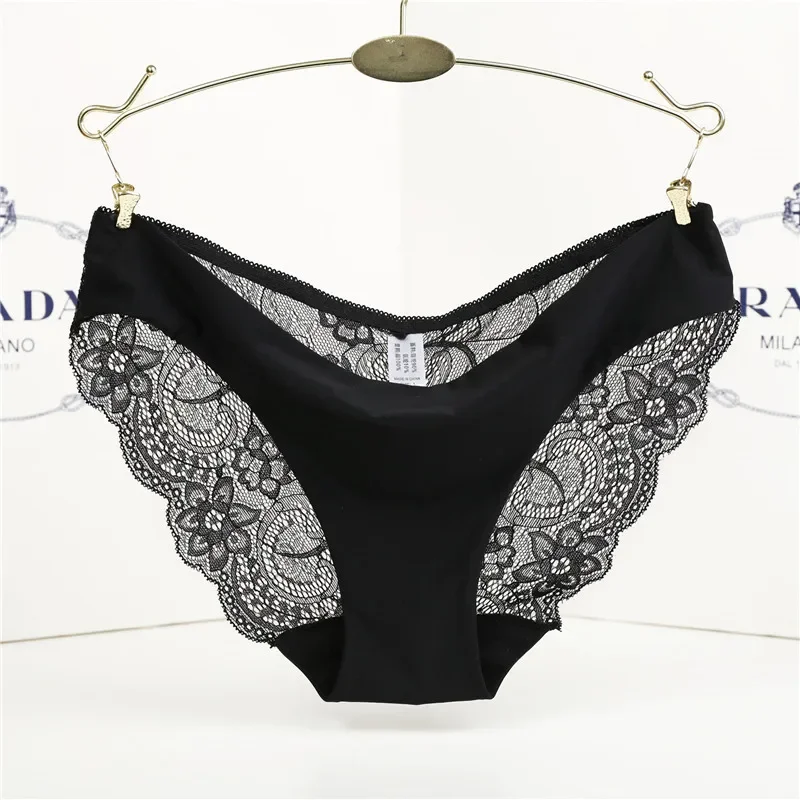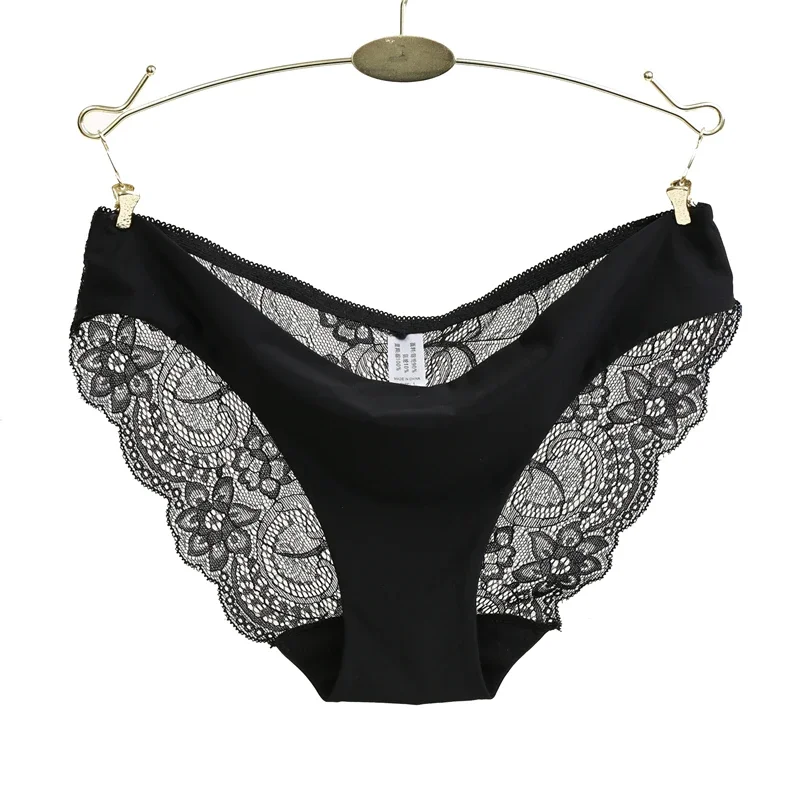Women’s Invisible Underwear Spandex Crotch intimate women sexy lace Black floral panties seamless panty